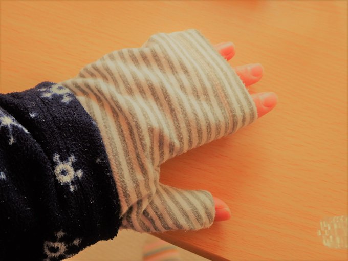 早くないけどおはようございます☀️なかなか部屋が温まらないこの時期は、夏につかう日焼け防止のアームカバー(100均)を自宅でつけています。手首が冷えない。外に出るとき手袋の下につけてても👌 pic.twitter.com/k1cKAcdGGz
