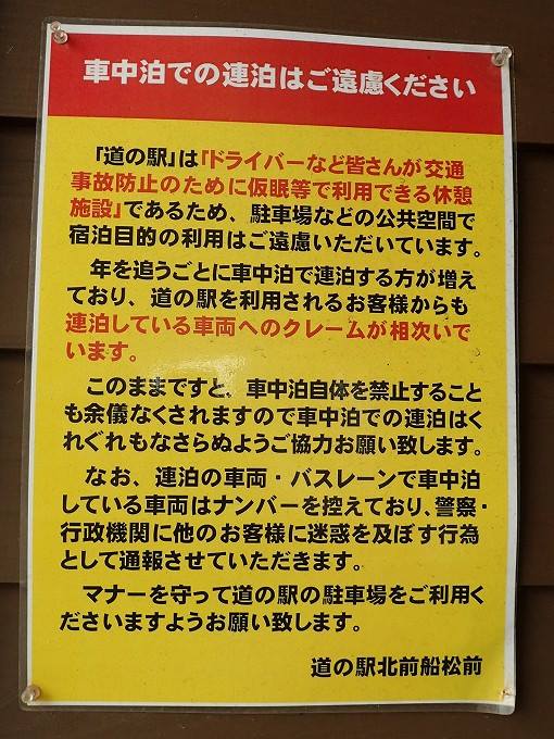2020年9月に立ち寄った際、車中泊車に対して強い要請の張り紙↓が出ていました。